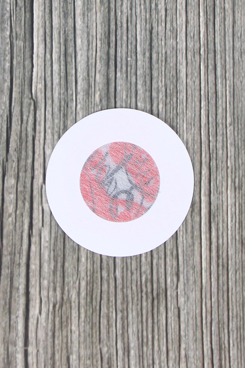 These white circle pasties feature red lips and "Kiss Me Baby" print.